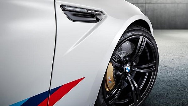 По аналогии со спорткаром M6 GT3 ограниченная спецверсия M6 Competition Edition окрашена в белоснежный цвет Alpine White. Декоративные полосы в фирменных тонах отделения BMW M GmbH расставляют яркие акценты на кузове автомобиля. Эффектный контраст в экстерьере создают 20-дюймовые матовые легкосплавные диски 343 M с пятью двойными спицами. Углепластиковые накладки на зеркала заднего вида, а также хромированные выхлопные патрубки, решетка радиатора, ручки дверей и боковые воздуховоды черного цвета напоминают об автоспорте. Задние спойлер и диффузор из карбона улучшают аэродинамику модели.