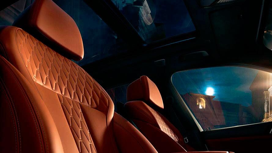 Салон обновленной модели, как и ранее, имеет роскошную отделку премиальными материалами. Центральная консоль развернута к водителю, в ее состав входят: