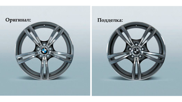Возможные повреждения представлены на фотографиях, которые были получены в ходе двух испытаний оригинальных и поддельных колесных дисков.